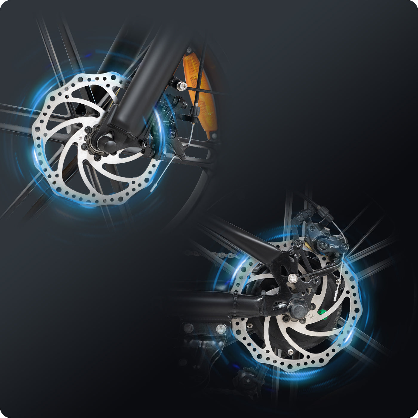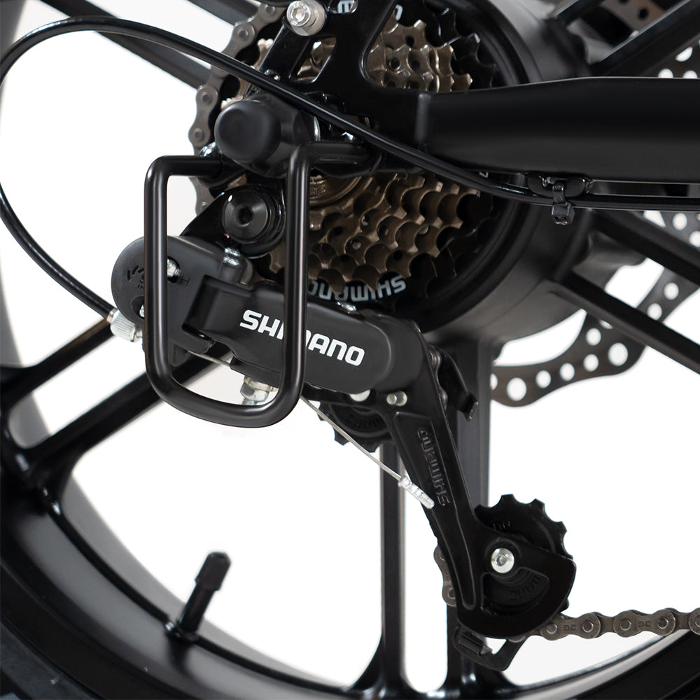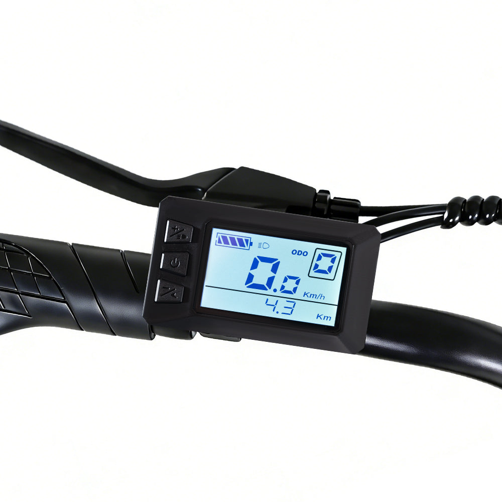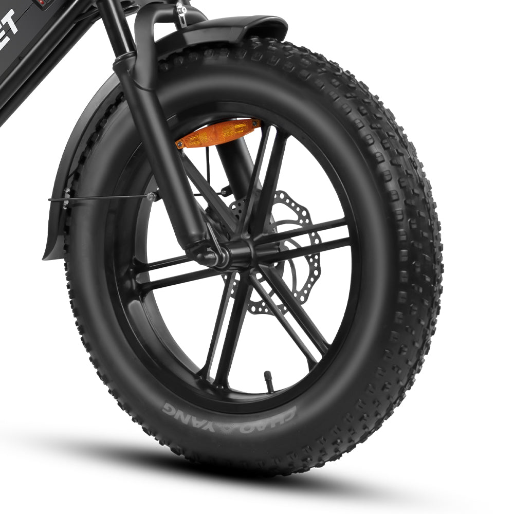 4.0" all-terrain fat tires deliver superior grip, shockabsorption, and stability on pavement, gravel, sand, and snow.