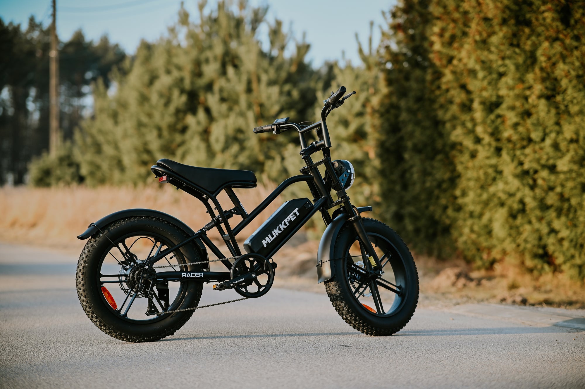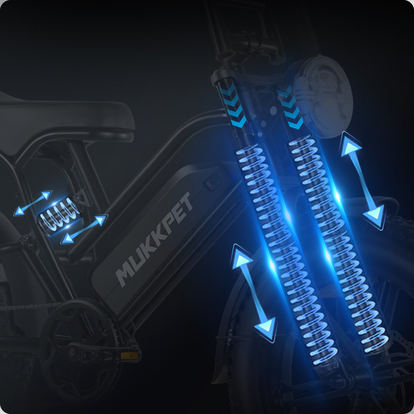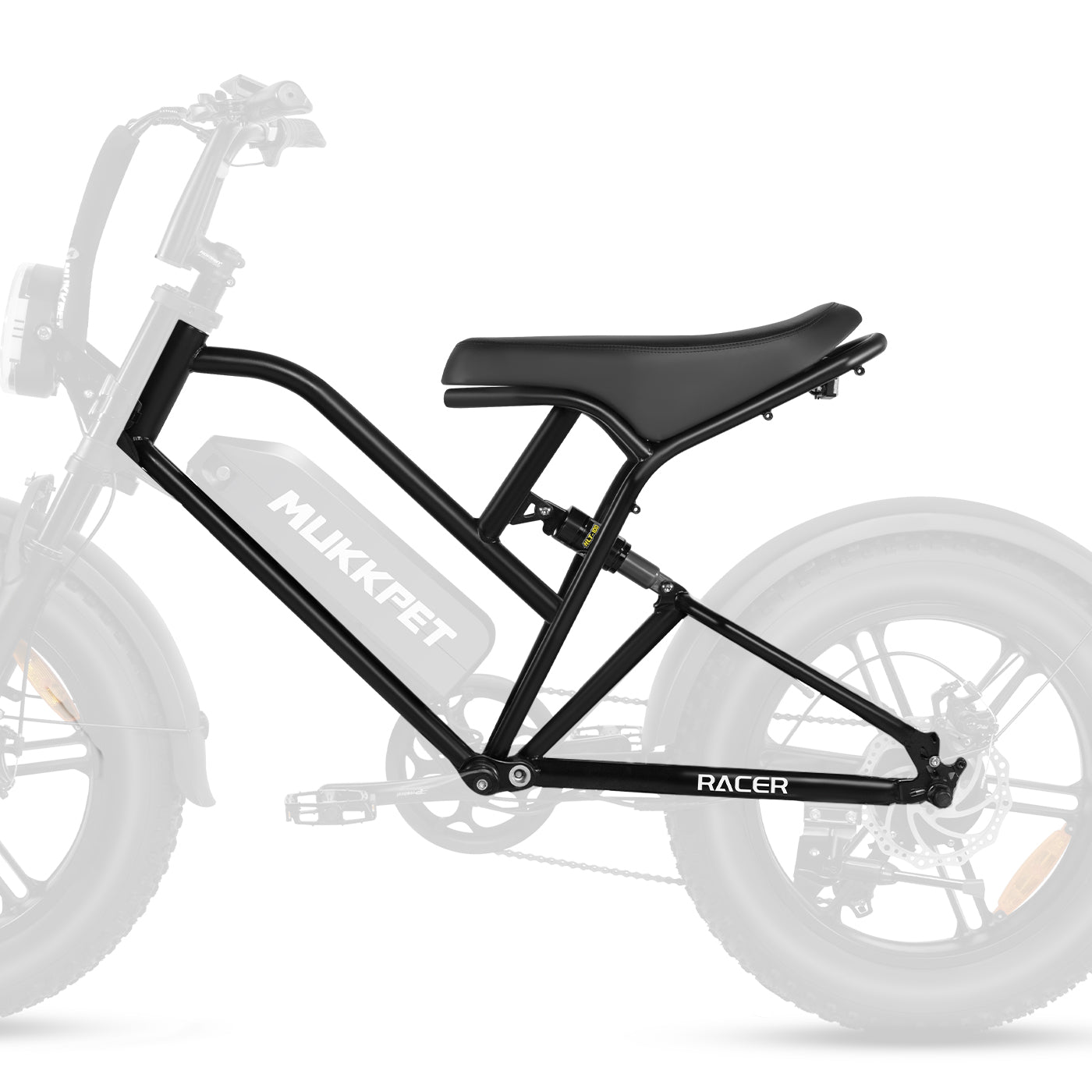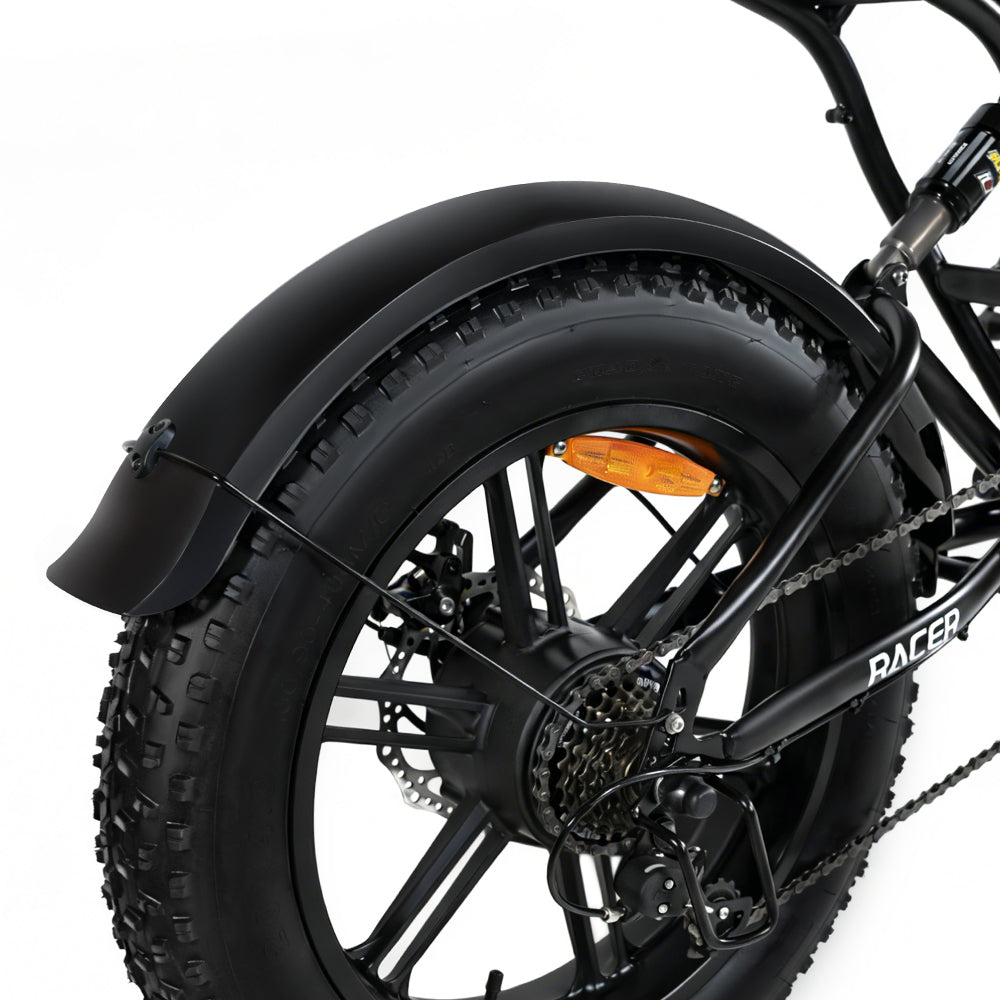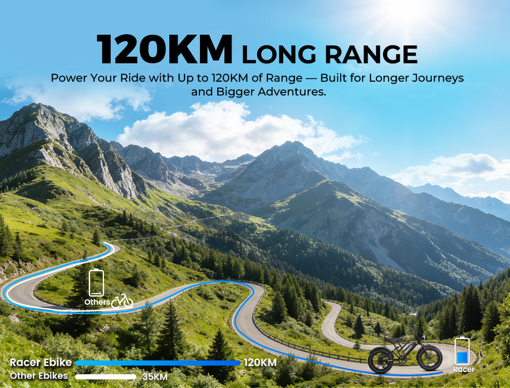 The Mukkpet Racer is built to conquer complex road conditions, rugged off-road trails, and long-distance commutes. Equipped with 20"x4" puncture-resistant fat tires and a full suspension system, it delivers unmatched stability and a smooth, comfortable ride.