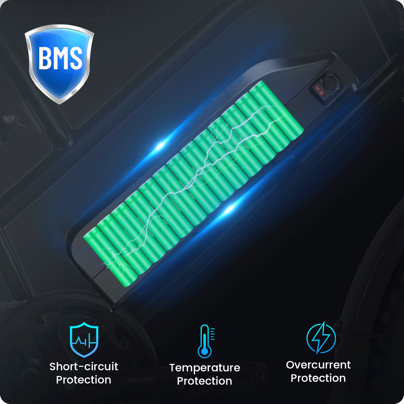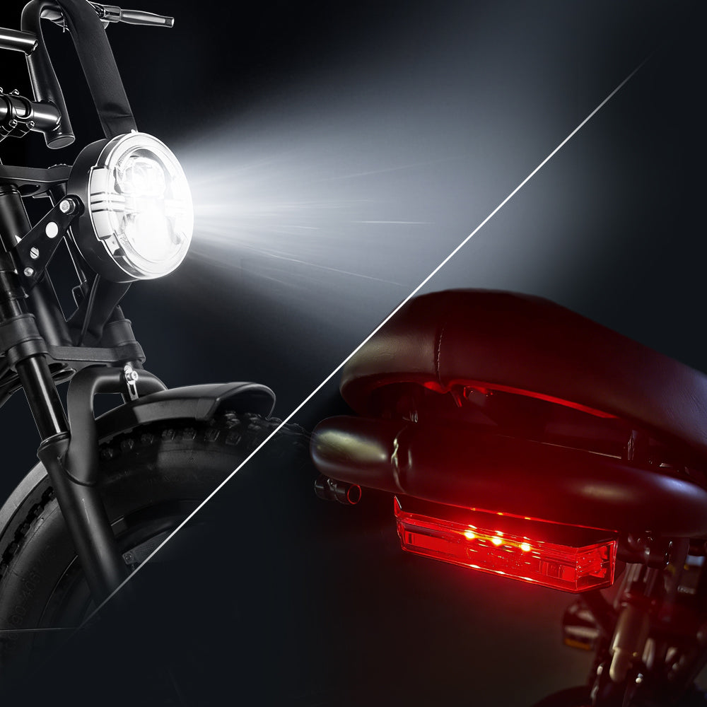 Bright front & rear lighting system ensures 360° visibility and safer riding day or night.